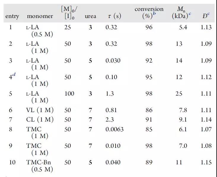 所有聚合物均具有高分子量和窄分布,聚合反應時間短,轉化率高。