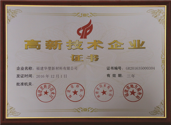 福建華塑工程塑料有限公司獲得高新技術企業(yè)榮譽稱號,是從事
